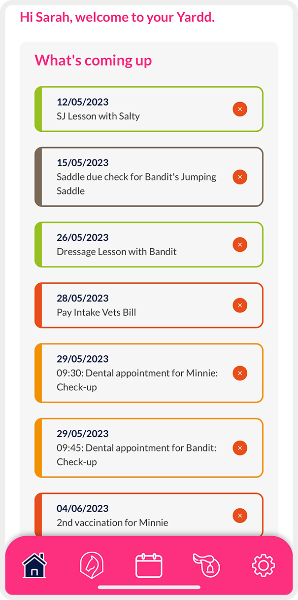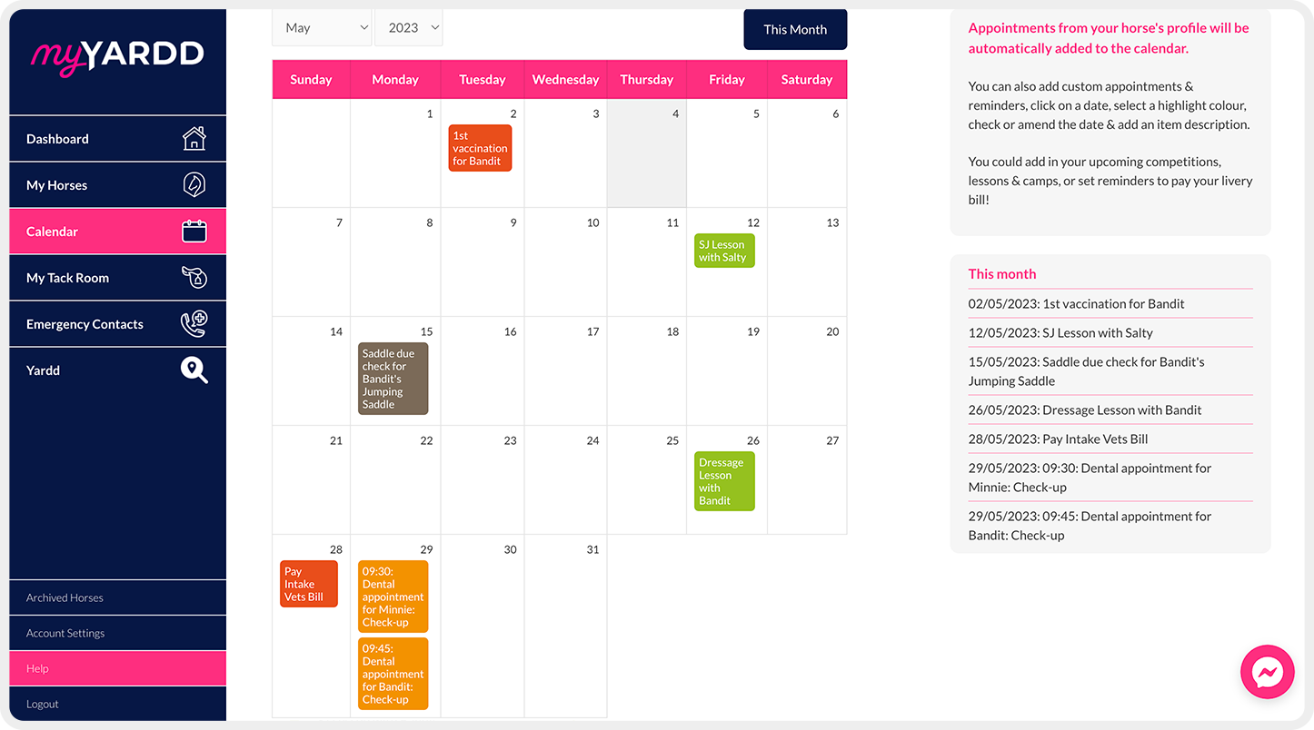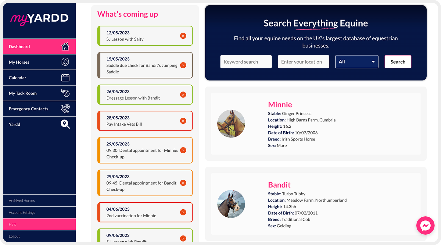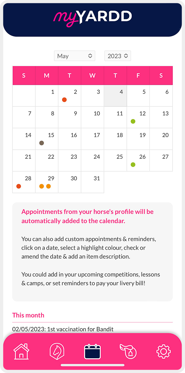 With myYardd calendar, you can view all upcoming events and expenses, making it easier to budget and plan your finances. Horses are unpredictable and unexpected costs will arise, having a clear overview of your regular commitments can help you prepare for them.