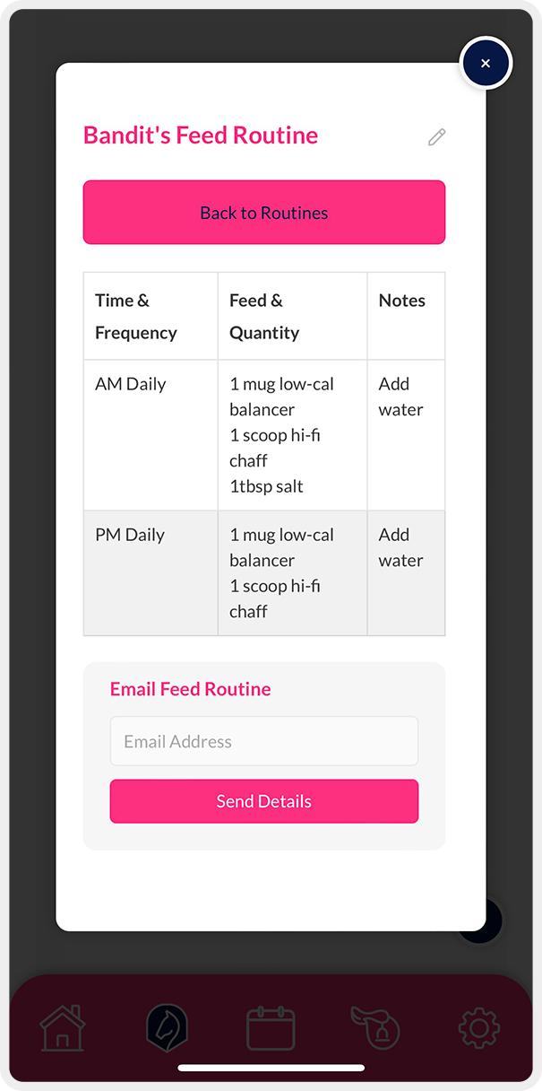 Create, save, and share your horse's feeding and care schedules.