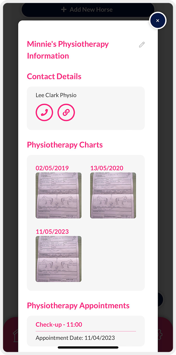 Keep all of your horse's important health information in one convenient location that you can access from anywhere, at any time. Say goodbye to paper records and effortlessly upload your vet records, images, physio and dental charts.
